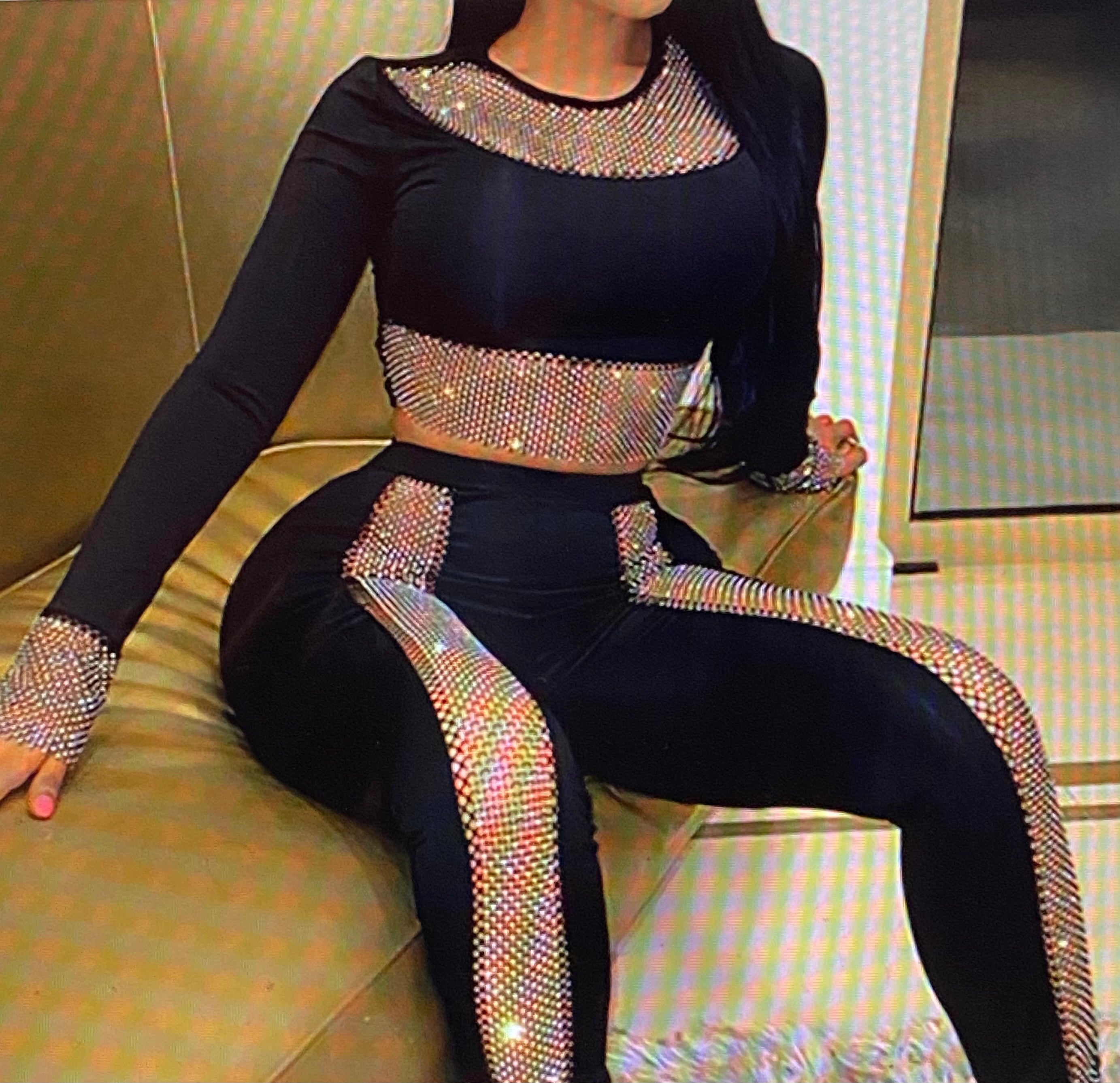 Gold Rhinestone Crop Top and Pencil Pant Set